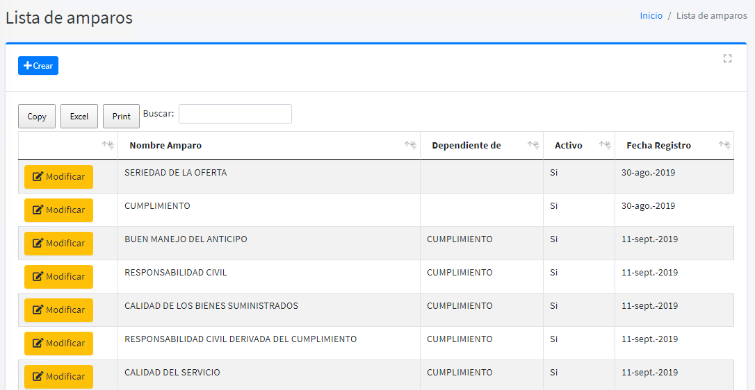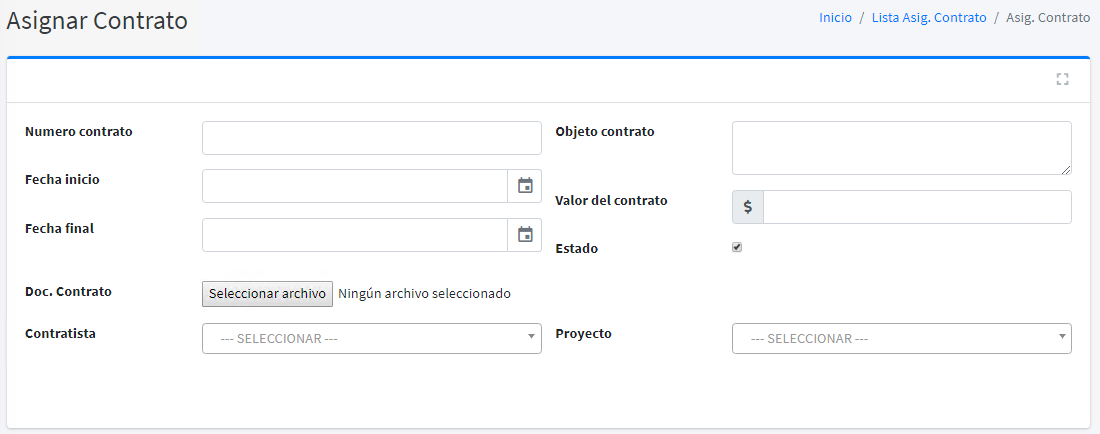 En el ingreso, el administrador crea al contratista y/o sube el contrato con el cual se deben expedir las pólizas de cumplimiento
